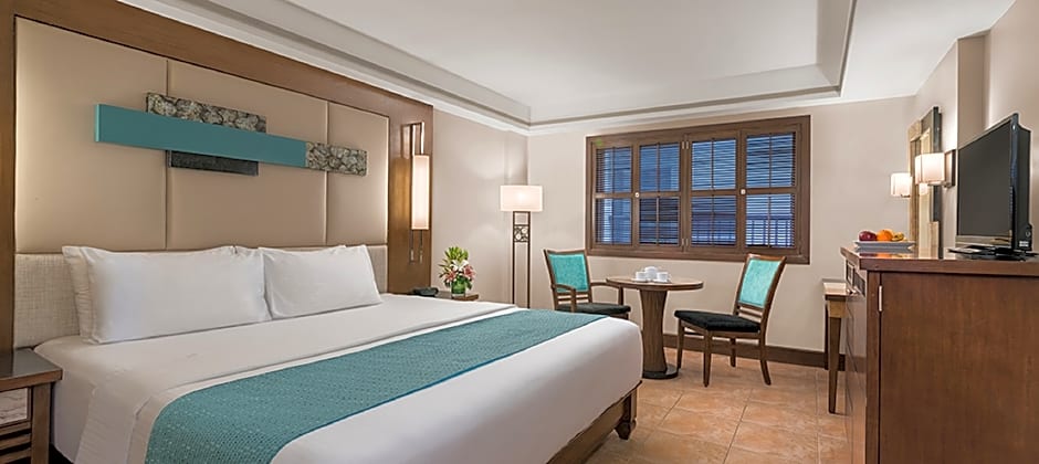 Premier Pool Access is 484 square feet and includes either a king-size bed 150-183 width, a queen-size bed 150-154 width, or a single bed 80-130 width plus desk, cable tv, hairdryer, and slippers.